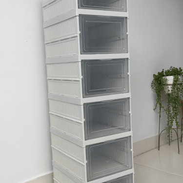 Acceso rápido y fácil: las puertas frontales abatibles o deslizantes permiten sacar y guardar los zapatos sin necesidad de mover toda la pila.